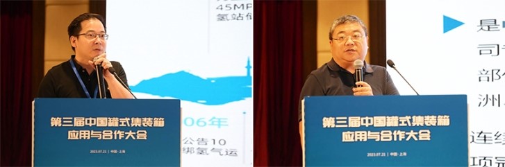 在主題演講環(huán)節(jié),中鐵鐵龍?zhí)胤N箱物流事業(yè)部箱資產(chǎn)管理部負(fù)責(zé)人欒黎強(qiáng)分享了鐵路罐箱運(yùn)輸發(fā)展現(xiàn)狀及對(duì)未來戰(zhàn)略的思考。中國船級(jí)社集裝箱檢驗(yàn)中心上海分中心業(yè)務(wù)總監(jiān)廖英勇介紹了中國船級(jí)社助力罐箱應(yīng)用標(biāo)準(zhǔn)化和智能化所開展的工作。中集安瑞科控股有限公司科技創(chuàng)新中心總經(jīng)理李東主題演講中分享了氫能裝備的發(fā)展現(xiàn)狀及應(yīng)用案例。中集安瑞環(huán)科技股份有限公司研究院院長孟慶國介紹了新興產(chǎn)業(yè)引領(lǐng)罐箱定制化發(fā)展的情況。