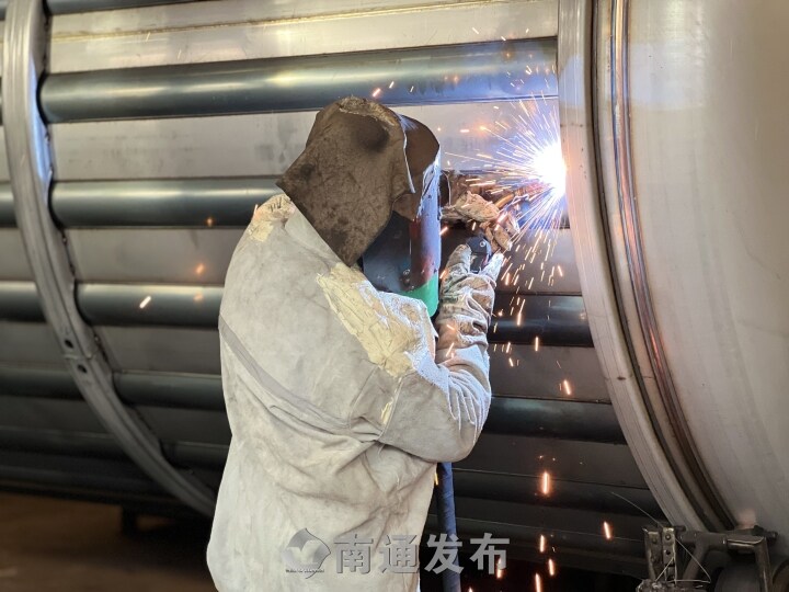 1日,記者走進(jìn)中集安瑞環(huán)科技股份有限公司(以下簡稱“中集環(huán)科”)生產(chǎn)車間,切身感受一線職工在高溫酷暑季節(jié)的作業(yè)環(huán)境。公司訂單飽滿,生產(chǎn)線馬力全開,工作人員有條不紊地忙碌著。令人印象頗深的是,公司自動(dòng)化生產(chǎn)線和裝備的投入使用,極大改善了員工的作業(yè)環(huán)境,減輕了人員勞動(dòng)強(qiáng)度,這也是中集環(huán)科發(fā)展新質(zhì)生產(chǎn)力的生動(dòng)實(shí)踐。早上6點(diǎn),公司標(biāo)罐車間十字焊接工李忠付開始今天的工作,中午12點(diǎn)便可下班。今年開始,公司明文規(guī)定要錯(cuò)開高溫時(shí)間段生產(chǎn),保障員工在高溫天氣下的安全與健康。“當(dāng)氣溫達(dá)到37攝氏度以上,我們下午都是不上班的。”2007年加入中集環(huán)科,李忠付已經(jīng)是一名老師傅,只見他麻利地穿好牛皮防護(hù)服、防護(hù)手套,戴上焊工防護(hù)面罩后,還會(huì)把提供涼氣的“空調(diào)衣”準(zhǔn)備好,一系列操作行云流水,他開始將加熱管和加強(qiáng)圈陸續(xù)焊接到罐體上。